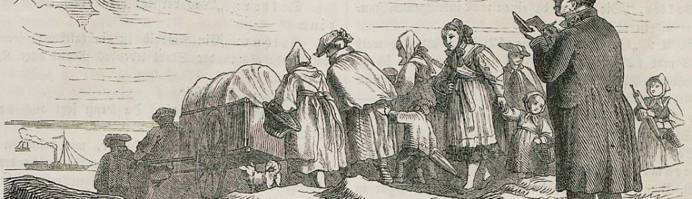 Deutsche Auswanderer auf dem Weg in die USA (Fliegende Blätter 38, 1863, 45)