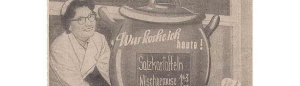 Die Kochtopfmethode folgte diesem Weg von Einzelprodukten zur Einkaufshilfe: „An einer in das Schaufenster gestellten schwarzen Tafel, die in einen Rahmen zu schieben ist, wird an jedem Morgen ein Rezept angebracht, das jeweils Produkte berücksichtigt, die in der Verkaufsstelle vorrätig sind. Ein am Eingang der Verkaufsstelle angebrachter Hinweis: ‚Was koche ich heute mittag? Unser Tip – siehe Schaufenster!‘ macht die Bevölkerung auf diesen Kundendienst aufmerksam“ (Naumann, 1954). Die Kochtopfmethode war also Dienstleistung und Lenkungsinstrument zugleich. Erstere wurde propagiert, zumal sie für erwerbstätige Frauen mit Doppelbelastung durchaus hilfreich sein konnte (erwerbstätige Männer wurden übrigens nie angesprochen…).