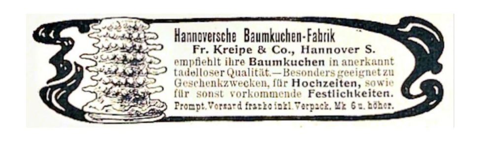 Es würde daher etwas fehlen, erwähnten wir nicht auch den Siegfried-Baumkuchen, ein gar ergötzliches Wortspiel eines Celler Versandfabrikanten, der seine profane Ware mit der hehren Wagnerschen Mythenwelt verband. Baumkuchen galt vor dem Ersten Weltkrieg vielfach als speziell deutsche Speise (Reichspost 1913, Nr. 207 v. 4. Mai, 35). Das mag gewiss ein Reflex auf seine bevorzugte Stellung in der preußisch-deutschen Hauptstadt Berlin gewesen sein, erfolgte jedoch in strikter Ignoranz gegenüber den vielfältigen auf offenem Feuer gebackenen Schichtkuchen Mittel- und Osteuropas.