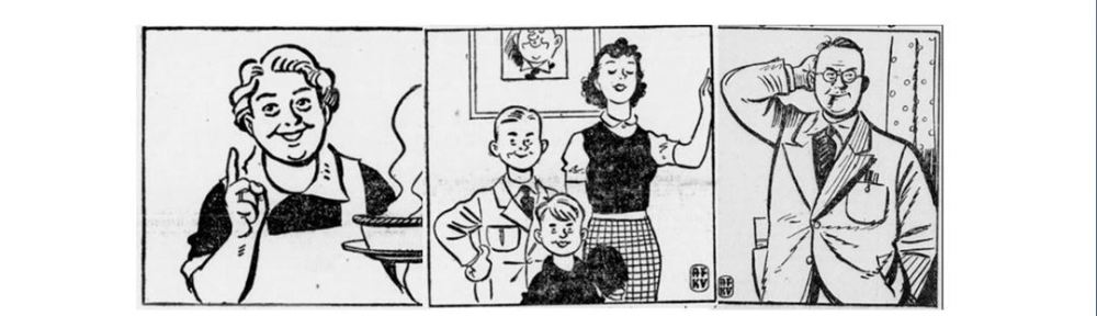 Dieses Motiv war für viele Zeitungen in der Tat das letzte Motiv ihrer Familie-Pfundig-Kampagne; bereits die Streifen zur Schuhpflege und zum Kleiderschneiden waren nur noch selten gedruckt worden. Die folgenden drei Motive fanden sich nur selten – wobei immer zu berücksichtigen ist, dass die Zeitungsdigitalisierung in diesem Staate, trotz erfreulicher Fortschritte in NRW, auf dem Stand eines rückschrittlichen Landes liegt.