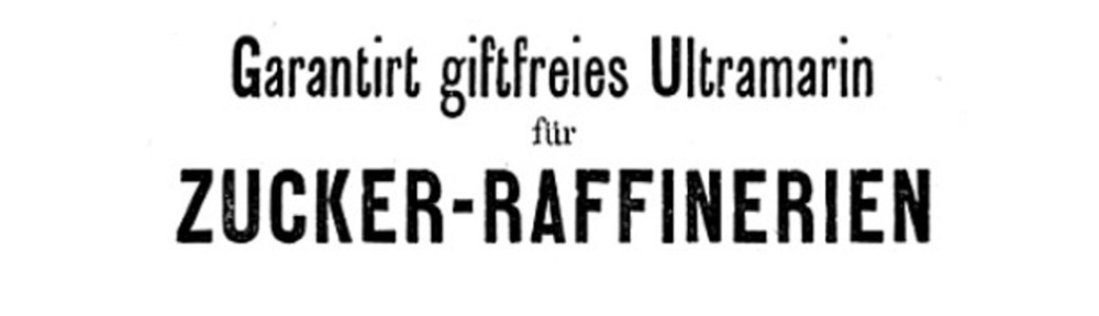 Doch natürlich ging es Mitte des 19. Jahrhunderts um mehr, denn der an sich aufstrebende Rübenzucker kämpfte um Marktakzeptanz. Der importierte, in London oder auch in deutschen Landen raffinierte Rohrzucker war gefälliger, heller, enthielt weniger Rückstände, zumal nicht die technisch aufwändig zu entfernende, teils stinkende Rübenmelasse. Der Ultramarinzusatz konnte helfen, die damaligen „Vorurtheile gegen den Rübenzucker“ (Pariser Ausstellungs-Skizzen für Böhmen. IX., Der Tagesbote aus Böhmen 1855, Nr. 267 v. 27. September, 1) zu überwinden. Das passte zu dem recht deutschen Glauben an heimische Ersatzmittel, die den Geist des allgemeinen Fortschritts verkörperten.