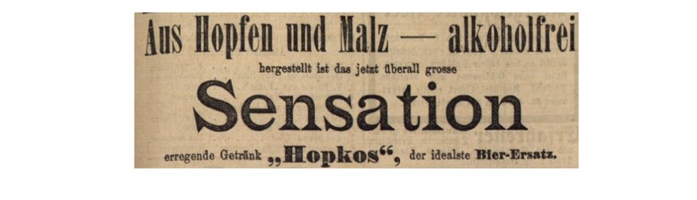 Alkoholfreie Biere etablierten sich seit 1896 im Flaschenbierhandel, langsam auch in den alkoholfreien Cafés und Gaststätten, mochte ihr höherer Preis von den sparsamen Bürgern auch stets moniert werden. Wichtiger bleib viertens aber der ungewohnte Geschmack. Selbst in der Krankenkost urteilten einzelne Ärzte apodiktisch-ablehnend: „Die neuerdings hergestellten ‚alkoholfreien Biere‘ sind wegen ihres schlechten Geschmackes untrinkbar“ (Carl Wegele, Die diätetische Küche für Magen- und Darmkranke, Jena 1900, 18). Süße Bierersatzgetränke mochten davon weniger betroffen sein, doch seitens des Alkoholhandels hieß es immer noch selbstbewusst: „Alle Surrogate und Ersatzmittel für Alkohol erscheinen völlig wirkungslos. Kohlensaure Malzwürze, als alkoholfreies Bier getrunken, ist so wenig Bier, wie eine Brauselimonade ein Champagnerwein sein kann“ (Wattenscheider Zeitung 1904, Nr. 297 v. 28. Dezember, 3). Hopkos wurde folgerichtig als wohlschmeckender alkoholfreier Bierersatz angeboten.