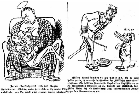Antisemitische Verschwörungstheorien als Teil kommunistischer Agitation (Die Rote Fahne 1929, Nr. 171 v. 5. September, 4 (l.); ebd. 1931, Nr. 229 v. 15. Dezember, 2)