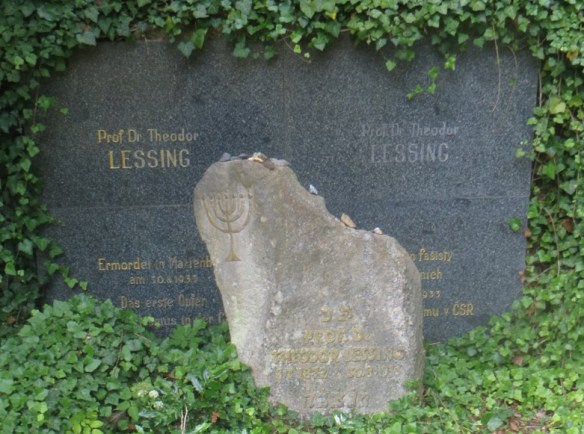 Der von der tschechoslowakischen Regierung anstelle der 1938 zerschlagenen Grabstelle 1958 errichtete Gedenkstein für Theodor Lessing auf dem Jüdischen Friedhof in Marienbad (Uwe Spiekermann, Juli 2025)