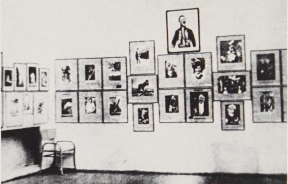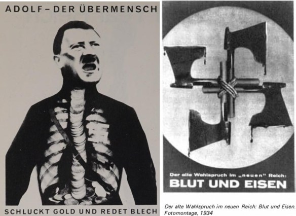 Ausstellungswand mit Fotomontagen John Heartfields – nach der „Säuberung“ des Schaukastens (Douglas Kahn, John Heartfield: Art and Mass Media, New York 1985, 8)