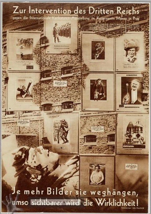 In Prag hatte man derweil schon eingelenkt, auf Anweisung des Schul- und Bildungsministers entfernte man am 13., spätestens aber am 14. Oktober die „anstößigen“ Exponate. Die Presseanweisung vom Abend des 14. Oktobers spiegelte dies: „Die Polemik gegen die Prager Kunstausstellung soll vorlaeufig nicht fortgefuehrt werden. Weitere Anweisungen folgen morgen auf der Pressekonferenz“ (Peter (Bearb.), 821). Die deutsche Seite hatte neuerlich scheinbar wirksame „antifaschistische“ Karikaturen verbannen können, behielt sich zudem weitere Schritte vor. In der tschechischen und der Exilpresse fehlen einschlägige Abbildungen, die deutsche Seite veröffentlichte dagegen Fotomontagen John Heartfields. Sie passten offenbar in das Propagandakalkül des NS-Regimes.