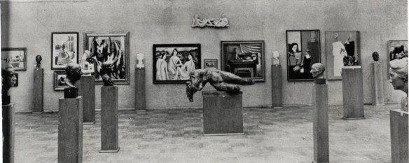 Blick in einen der Ausstellungsräume (Dnešní Mánes | Databáze uměleckých výstav v českých zemích 1820 – 1950)