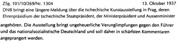 Aktivierung der deutschen Presse gegen die Mánes-Ausstellung 1937 (Karen Peter (Bearb.), NS-Presseanweisungen der Vorkriegszeit, Bd. 5, München 1998, 816-817)